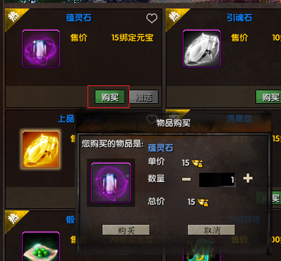 在商城内,点击购买物品,会弹出小窗口,选择购买数量即可获得道具